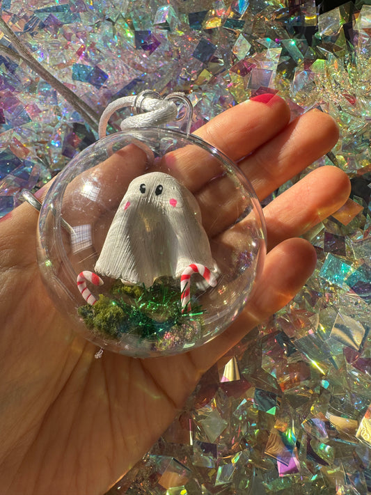 Christmas Hand Painted Ghost Small Bauble Decoration