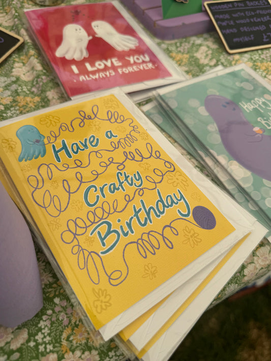 Happy Birthday Crafter Ghost Knitter Greeting Card