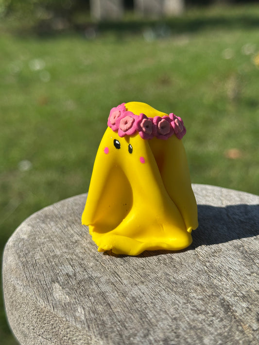 Ghost Buddy Figure: Yellow with Pink Flower Crown