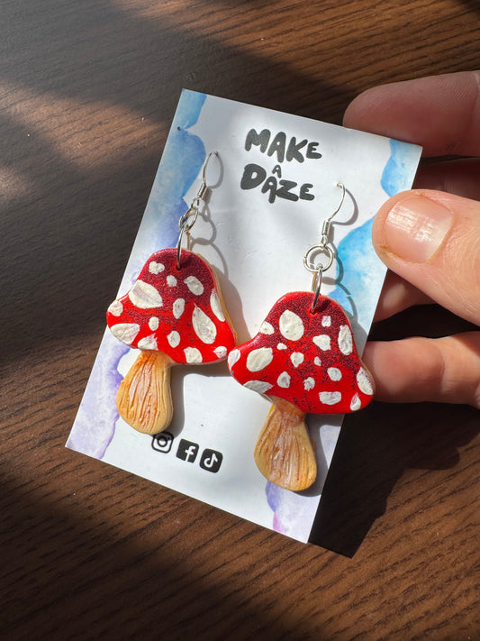 Red Toadstool Hand Painted Sparkle Mushroom Earrings