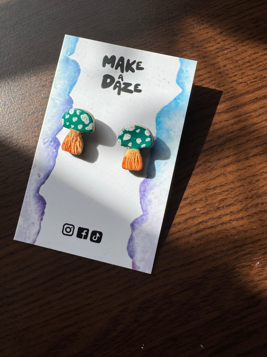 Mini Hand painted Green Teal Mushroom Stud Sets