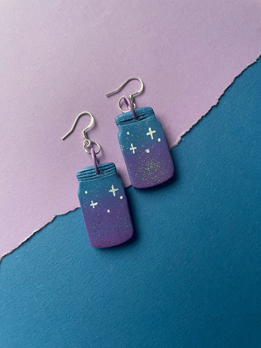 Blue and Silver Sparkle Glitter triangle dangle Earrings