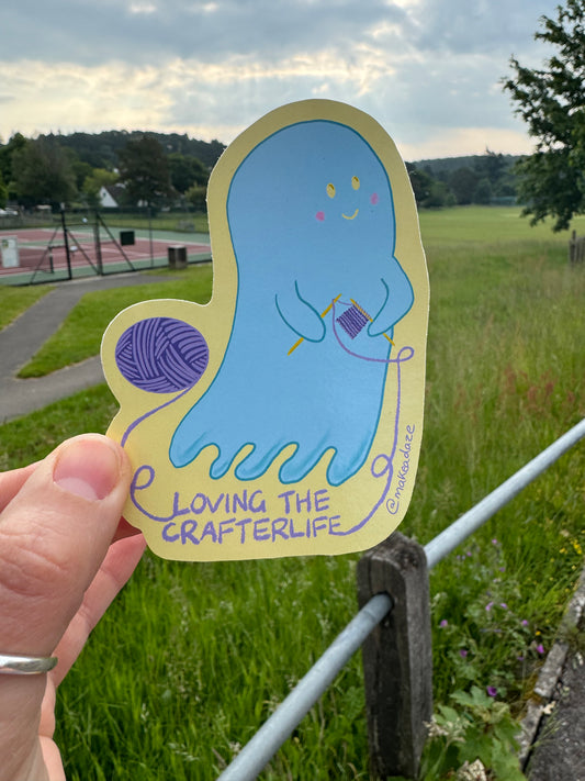 “Crafterlife” Ghost Knitting Vinyl Sticker