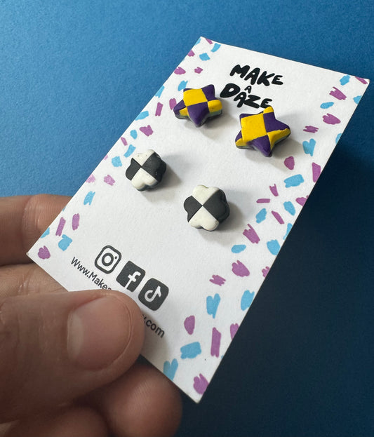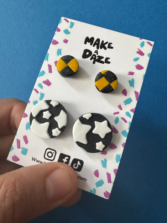 Stud pack set of 2: Checkboard and Monochrome Star Circle Studs