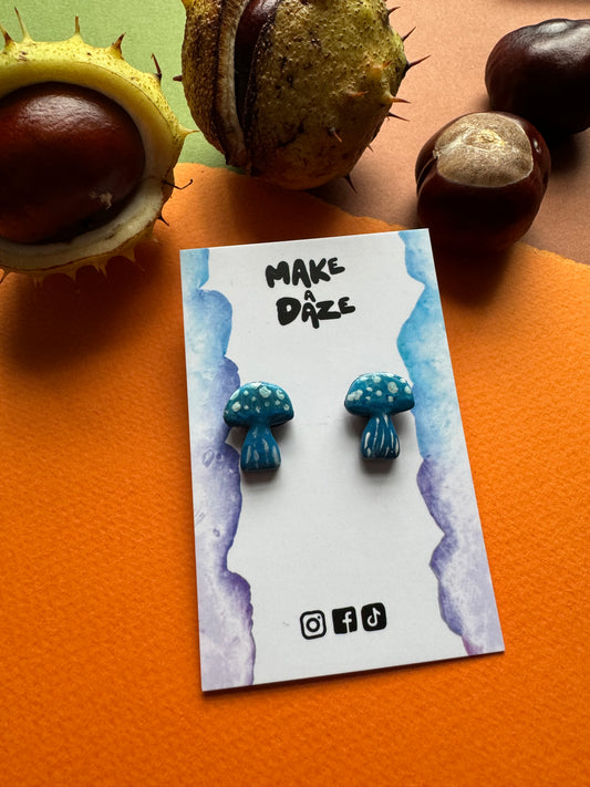 Mini Hand painted Blue Mushroom Stud Sets