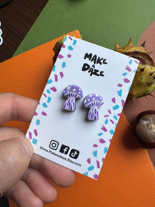 Mini Hand painted Purple Mushroom Stud Sets