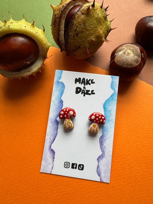 Mini Hand painted Red Mushroom Stud Sets