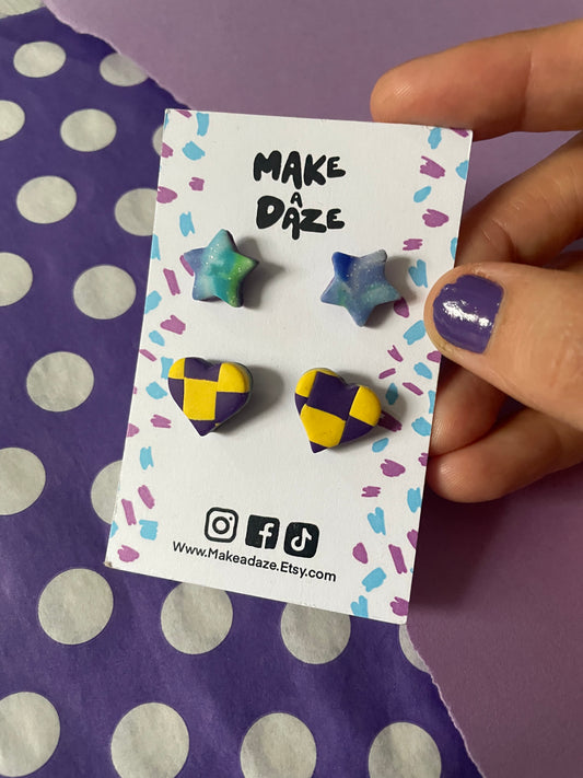 Stud Earring Twin Pack: Star and Heart Set