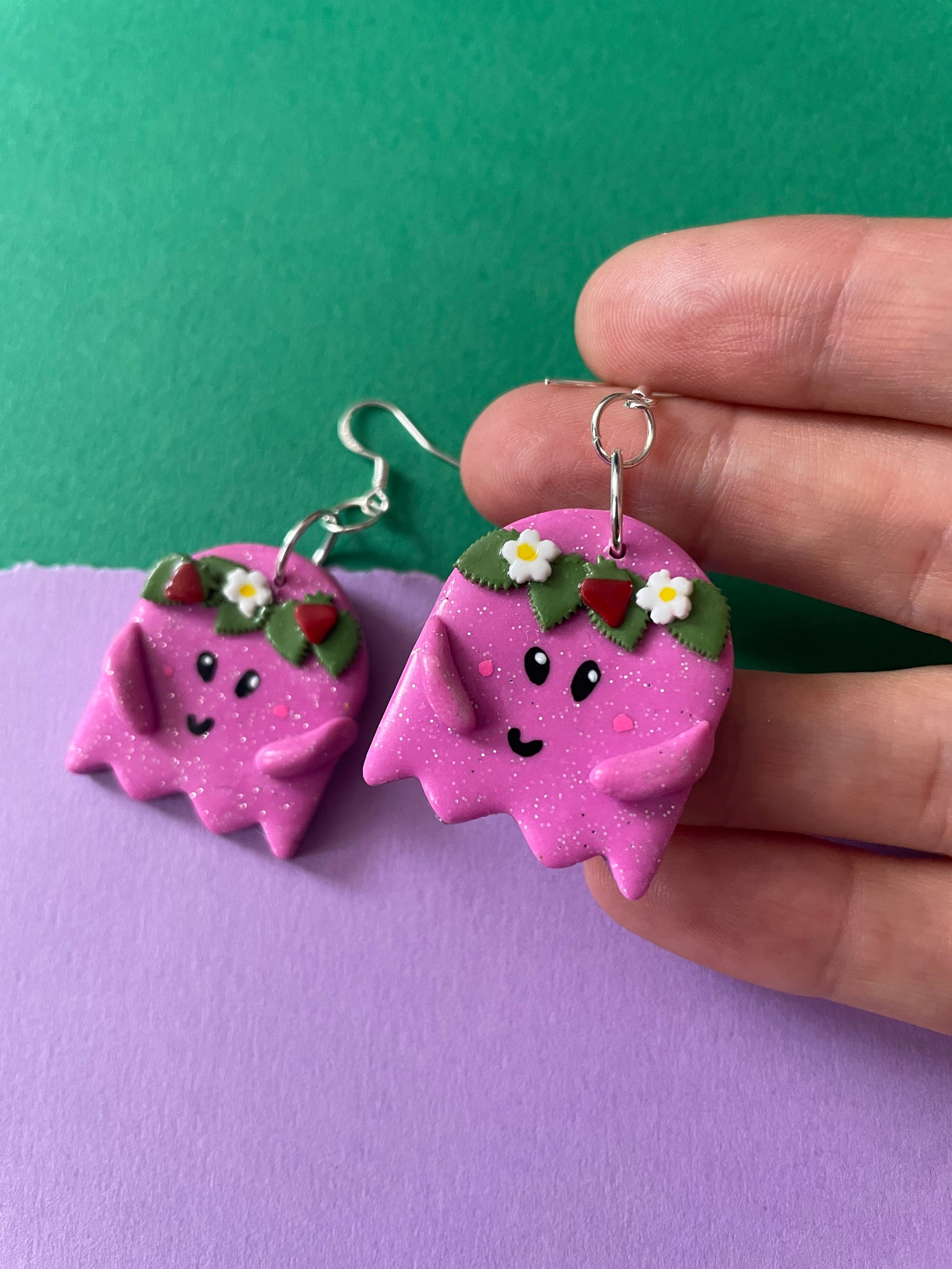 Flower Crown Cutie Ghost in Pink Earrings