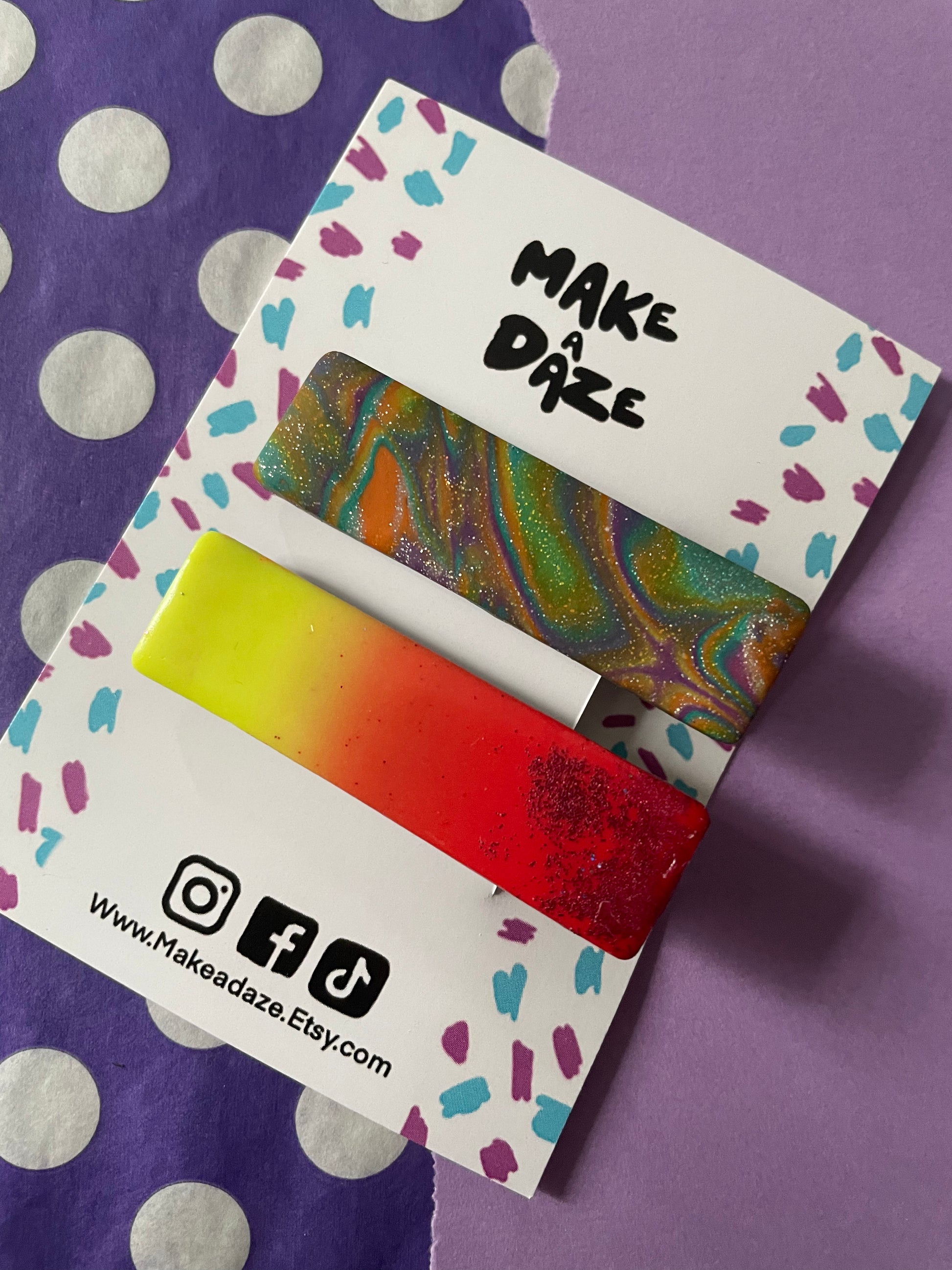 Hair clip 2 pack: Fire Ombre Sparkle and Mixed Jewel Tones