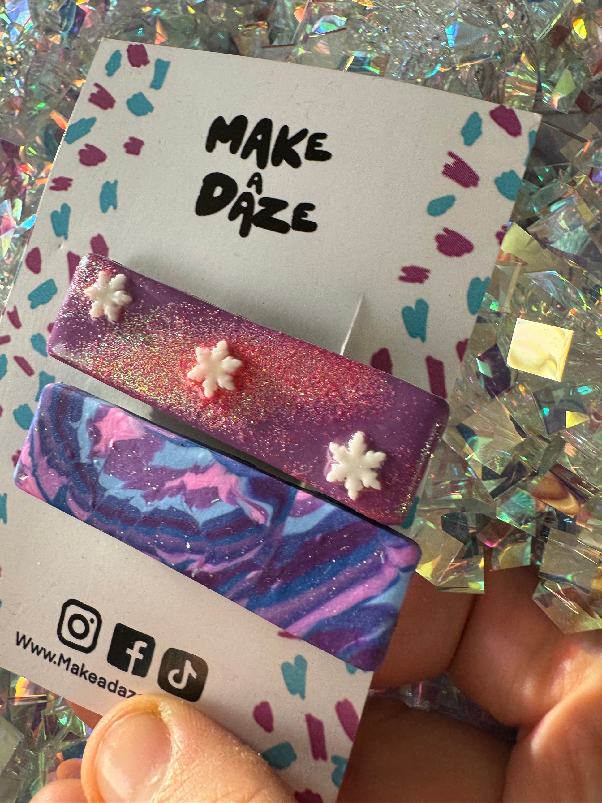 These Christmas light-weight, colourful and funky clips are handmade in Surrey by myself, Laura and attached to crocodile-style meta clips