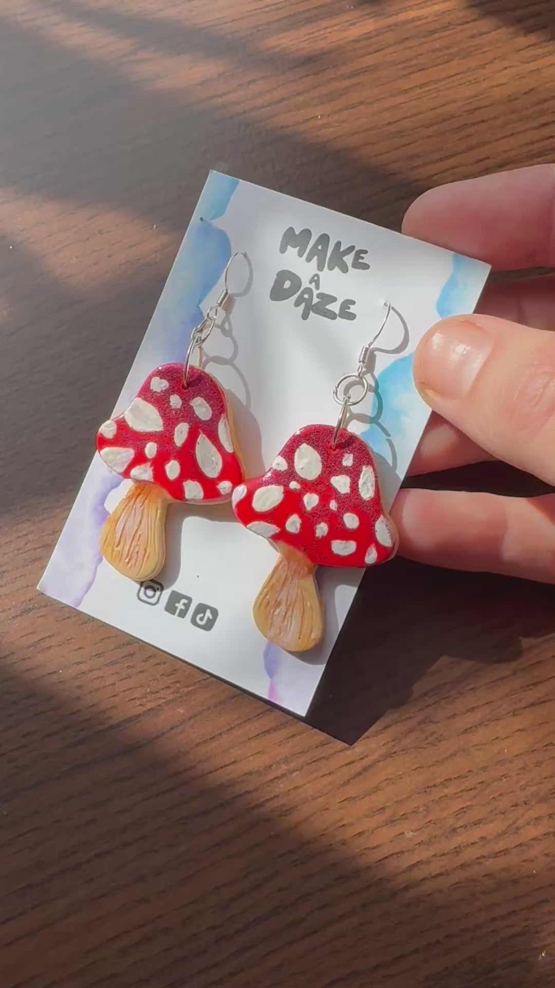 Traditional style Amanita Fungi Earrings which are a classic Makeadaze design that have become iconic of my brand. Hand painted with acrylic an gloss finished to protect the details.